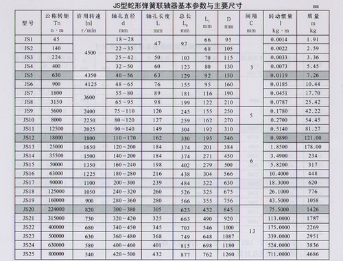 JS型蛇形彈簧聯軸器